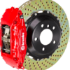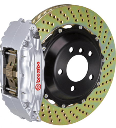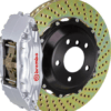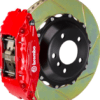 The Gran Turismo system’s level of technology and performance is unrivaled by any other product on the market. Each system is designed vehicle specific for maximum performane and Optimum Brake Balance. Gran Turismo Systems are comprised of lightweight calipers and 1 piece or 2 piece floating vented rotors up to 15 in diameter. Calipers are available in red, silver or black and discs are available in cross drilled or slotted. Increased brake torque and thermal capacity, dramatically improves the vehicles performance. This powerful combination offers the extreme in Brembo’s leading edge technology for high performance street and track use applications. Brembo brake systems are fully compatible with your vehicles ABS and traction control systems.