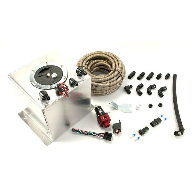 Heavy Duty Construction. Nitrous Outlet’s dedicated fuel systems come complete with a custom built hand welded 2 gallon fuel cell, mounting brackets, Walbro in tank fuel pump, Aeromotive fuel regulator, Aeroquip 6 An hose, fuel lines, and fittings.